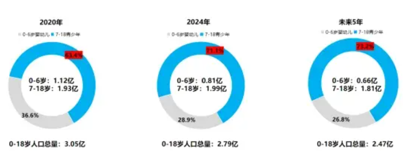 国度统计局数据自大,2020年以来,0—6岁婴幼儿东谈主口萎缩,但青少年群体规模矫捷在1.9亿控制,占儿童总东谈主口比例从2020年的63%升至2024年的71%,成为低生养率配景下的稀缺增量群体。